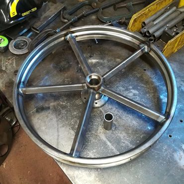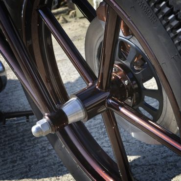 We offer round or square spokes, spool hubs or with single disc flanges. Only front wheels are available at the moment but we are trying to get rims to make rear wheels.