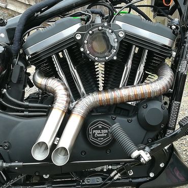 We offer Custom made Stainless steel exhaust systems, from 4 into 1 - drag pipes, polished - welds left showing. Like our frames, our exhausts are all bespoke so feel free to speak to us about your ideas.